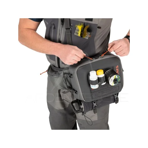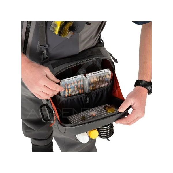 Confortable, modulaire et conçu pour transporter tout ce dont tout ce dont vous avez besoin, le Freestone Hip Pack est la réponse ultime pour garder l’équipement et les accessoires en place et prêts à être déployés rapidement.Le tissu Ripstop en nylon 330D avec revêtement arrière en polyuréthane est à la fois léger et durable.Boîte à outils entièrement structurée, moulée par compression, avec une seule fermeture à glissière pour le compartiment principal, comprenant un panneau de fixation du fly patch à l’avant, à l’intérieur.Poches en filet extensible à l’intérieur du généreux compartiment principal ; poche de rangement zippée avec clip pour téléphone et clés.La sangle souple sur la ceinture élimine le besoin de deux ceintures en permettant d’attacher un bâton de wadingÉtui pour bouteille d’eau sur la face inférieure permettant d’accueillir une bouteille d’un litre
