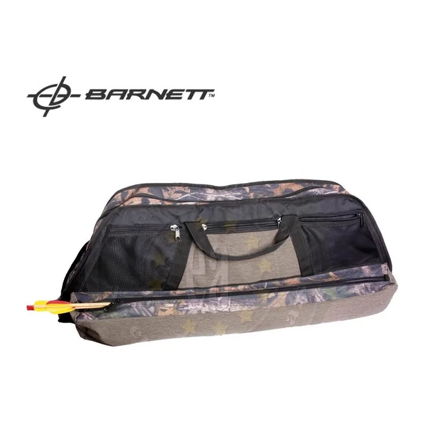 HOUSSE CAMO POUR ARC A POULIES BARNETT : Caractéristiques : -Housse camouflage pour arc à poulies, -Extérieur tissu résistant, -Intérieur rembourré anti choc, -Grande poche frontale de 94 cm pour les flèches, -2 poches en filet et 1 poche en tissu pour gants, viseurs, accessoires, *Dimensions intérieures : 105 X 43 cm.