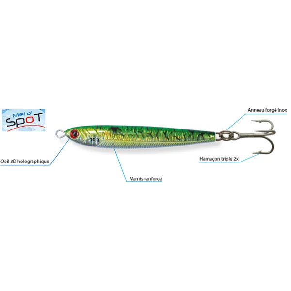 Afin de résister aux combats les plus soutenus avec de puissants prédateurs, le Métal Spot est armé avec des hameçons 2 X ultra piquants et des anneaux brisés forgés extra strong.