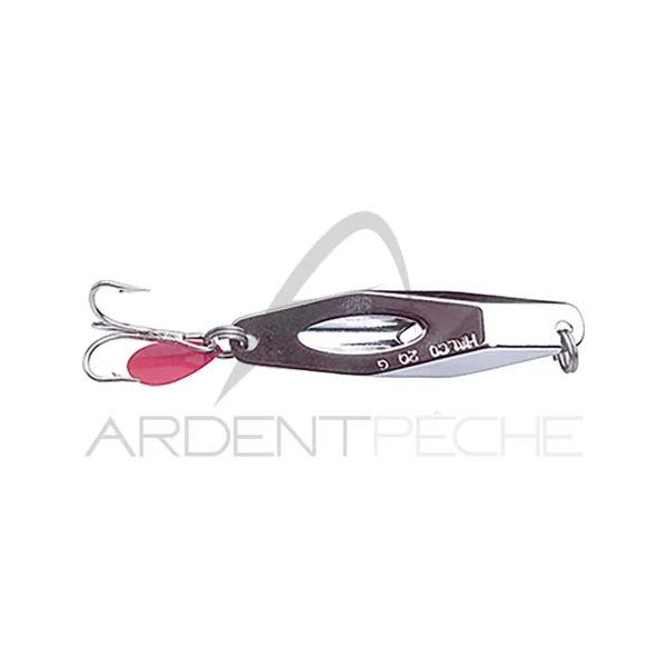 Cuillère inox multi facettes munie d’un canal central par lequel l’eau s’infiltre pour émettre un sifflement et une forte traînée de bulles. Coupée en biseau, elle pénètre bien dans l’eau à la récupération, ce qui lui donne aussi une ondulation du plus bel effet en se balançant de gauche à droite. Elle est armée d’un fort triple et de 2 anneaux brisés triples ultra renforcés. C’est l’objet incontournable pour toutes vos pêches : lorsque le poisson est craintif et qu’il nécessite des lancers lointains ou encore quand il ne se nourrit que de poisson fourrage.