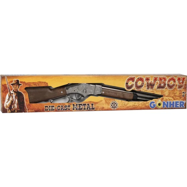 Le jouet carabine à levier sous garde de Gohner est une carabine de cowboy qui ravira vos petites têtes blondes. Avec cette Carabine de couleur métal à 8 coups l’ordre et la justice vont régner dans les plaines du far west ! La carabine, pour plus de réalisme, fonctionne avec des cartouches à amorces 8 coups.