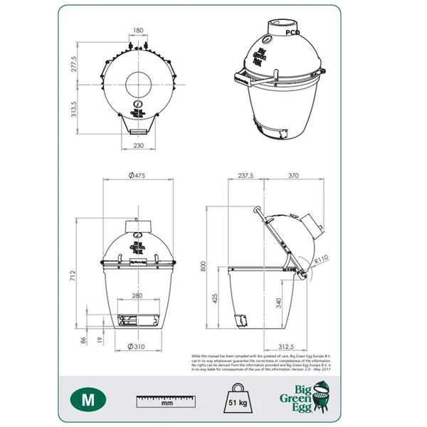 Suffisamment compact pour être utilisé dans un petit jardin de ville, dans une cour ou sur un balcon, il est assez grand pour grilleur, fumer, et même cuire du pain et des pizzas.