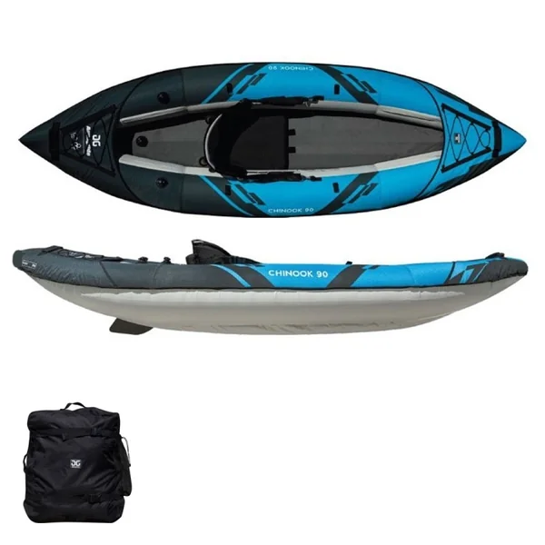 La kayak gonflable Aquaglide Chinook 90 est idéal pour les kayakistes en recherche de Polyvalence. Très large et spacieux, ce kayak est ultra-stable pour vous accompagner lors d’excursions en mer, en lac ou en rivière calme.