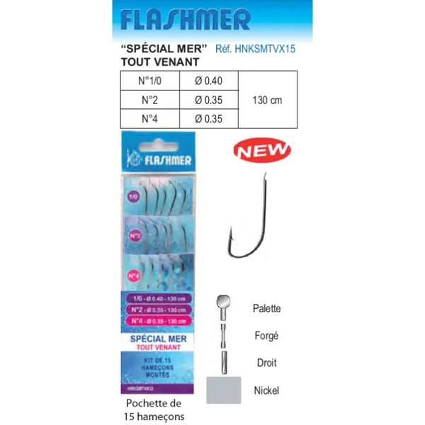 Kit de 15 Hameçons montés Spécial Mer Tout venant Kit de 15 Hameçons montés Spécial Mer Tout venant
