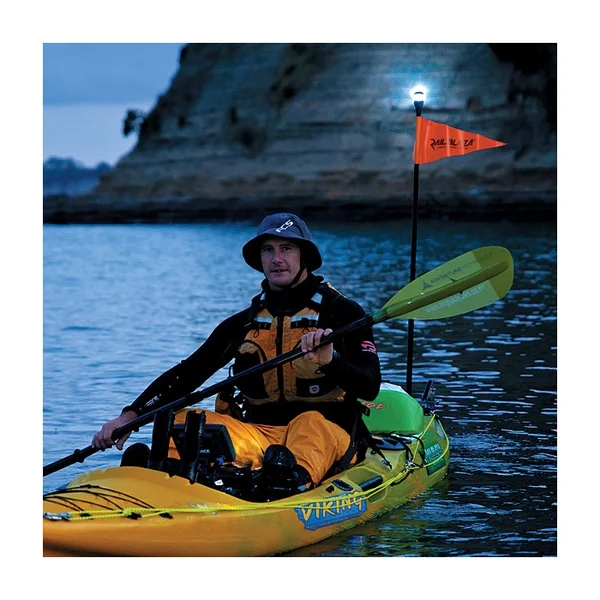 Kit de visibilité pour kayak comprenant un fanion orange et un feu à Led pour naviguer lorsqu’il fait un peu sombre. Le tout avec une fixation Railblaza pour un montage / démontage rapide et solide.