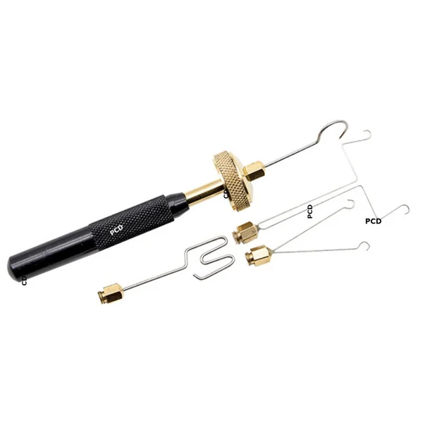 Outil Ingénieux de montage de mouches, livré avec 4 têtes interchangeables pour adapter la taille du rotobille à différents types de fibres.