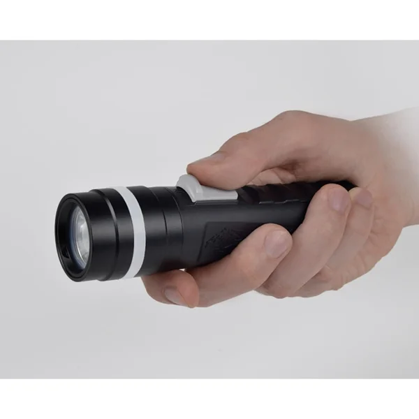 • Matériau : aluminium anodisé anticorodal + ABS translucide antichoc pour corps de torche/interrupteur + polycarbonate pour lentille