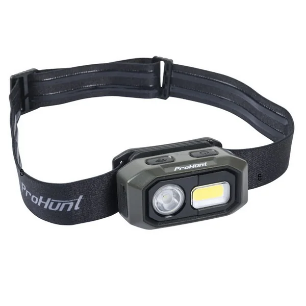 Lampe frontale LED, de marque Ligne Verney Carron, rechargeable grâce à un câble USB, avec détecteur de mouvements pour mise en fonction en mode main libre ou via un interrupteur.