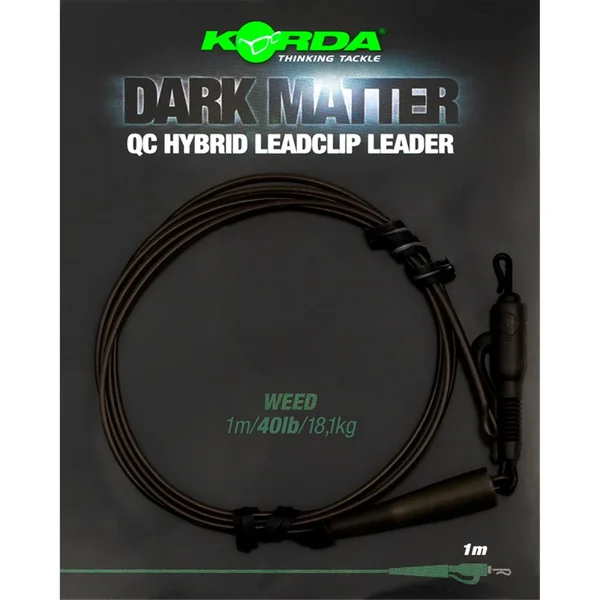 Le LEADER DARK MATTER QC HYBRID de Korda sera parfait pour votre corps de ligne. Celui-ci est réalisé en tungstène lui donnant du poids pour se plaquer sur le fond. Il est également coloré afin d’être très discret sur le fond. Il est très résistant à l’abrasion et costaud, pouvant supporter une charge de 40lb (18,1KG). Il est équipé d’un clip plomb hybride avec une attache Quick Change pour changer de bas de ligne rapidement. De l’autre côté, vous avez le manchon pour fermer et sécuriser le plomb. La liaison de votre leader peut se faire avec un noeud de type « boucle dans boucle » pour changer rapidement de leader si besoin. Un atout de taille, très complet qui vous fera gagner du temps au bord de l’eau !