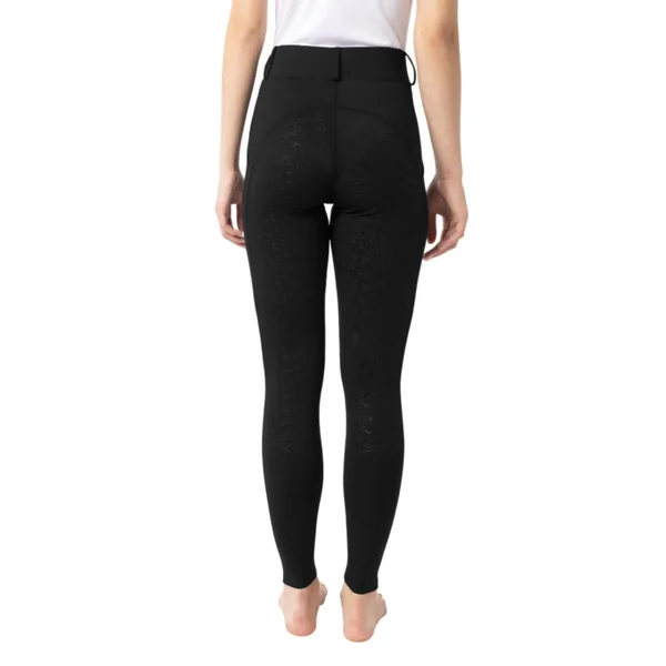 Le legging Dea avec grip intégral de chez Horze allie style, confort et performance pour les cavalières recherchant un vêtement technique adapté à la pratique équestre. Conçu pour offrir stabilité, liberté de mouvement et praticité, il est idéal pour les séances à cheval comme pour un usage quotidien Fond intégral avec grip en silicone : Ce legging est doté d’un grip silicone sur toute la surface d’assise et l’intérieur des jambes, assurant une adhérence optimale à la selle et une position stable, même lors des mouvements les plus dynamiques. Taille haute : La coupe taille haute offre un maintien renforcé, soutient le ventre et assure un confort optimal tout au long de la journée. Poches pour téléphone : Deux poches latérales sur les cuisses permettent de transporter un téléphone ou de petits objets essentiels de manière pratique et sécurisée. Passants de ceinture : Des passants intégrés permettent de compléter le legging avec une ceinture, offrant plus de polyvalence et un ajustement parfait selon les préférences. Le tissu stretch du legging offre une élasticité optimale, permettant une liberté totale de mouvement pour monter à cheval ou se déplacer au quotidien. La coupe près du corps épouse la silhouette sans gêner, tout en offrant une sensation de maintien agréable.