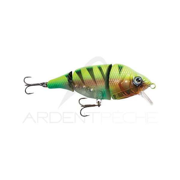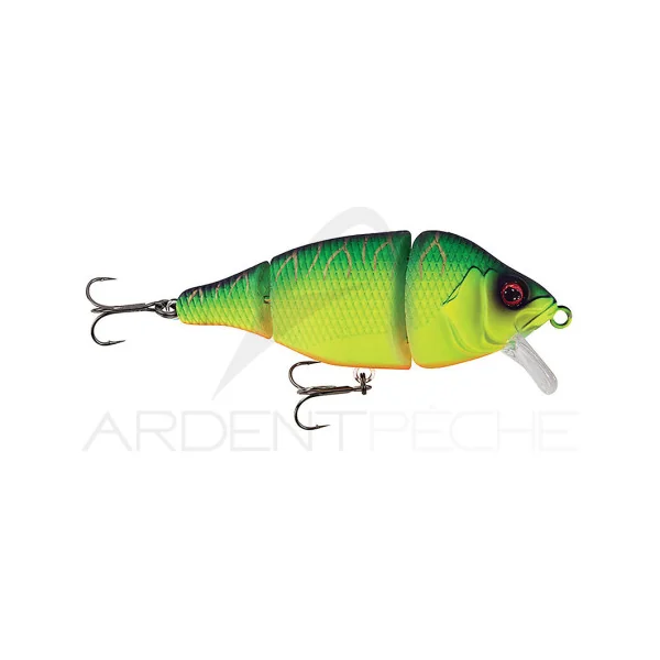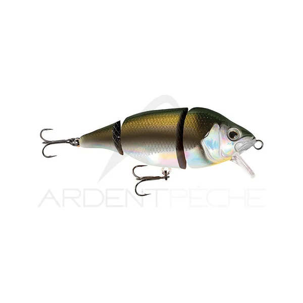 Leurre articulé à bavette qui effectue une nage sinueuse tout en produisant des cliquetis lorsque ses différentes sections s’entrechoquent.
