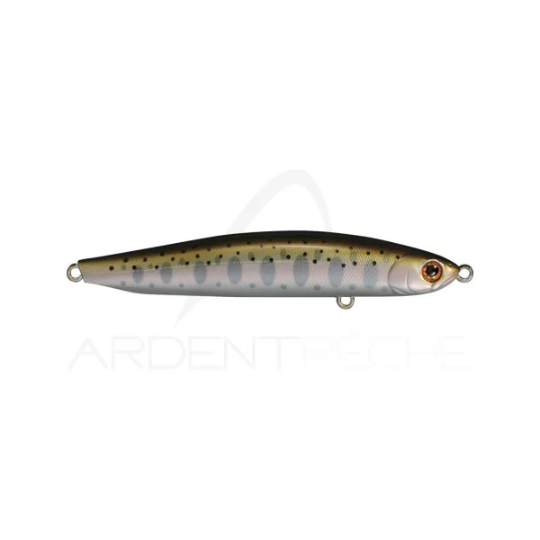 Leurre imitant léperlan, le sprat. A utiliser lorsque la mer est basse. Une animation lente, irrégulière est latout de ce leurre. Petits twitchs, temps d’arrêt pour le faire osciller flanc sur flanc à la descente Servez-vous de la traversée de veines de courant par exemple pour lui donner encore plus dirrégularité. Sa densité aide aux lancers longs et précis. Monté en ST 46 #6
