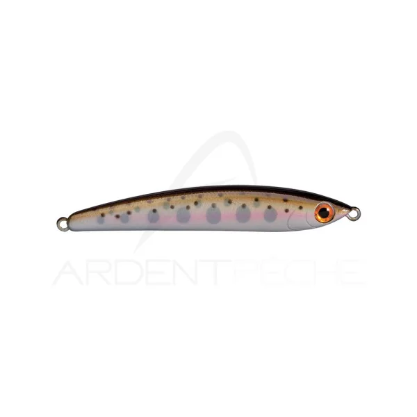 Ce leurre sans bavette, très dense, concentre sa partie lestée au niveau dun ventre plat. Cette particularité le fait osciller (rolling) lors des relâchés. Il est très efficace sur les truites en grandes rivières. A manier en twitching et stop and go. A lorigine prévu pour la truite, ce leurre savère tout aussi prenant sur des chasses de bars, en Méditerranée sur les maquereaux espagnols et enfin en eau douce sur les perches.