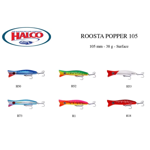Leurre de Surface Halco Roosta Popper 105 La gamme des Roosta Popper s’impose par ses distances de lancer impressionnantes ainsi que par sa facilité d’utilisation.