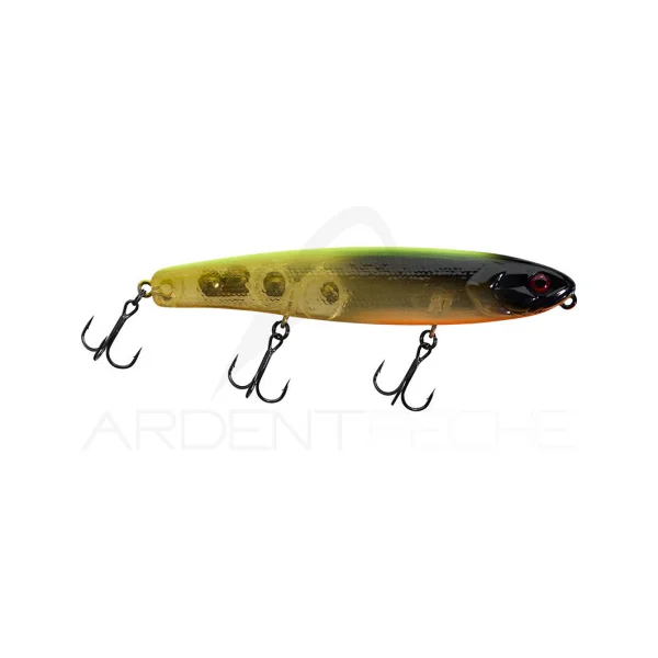 Le légendaire BONNIE 128 se décline désormais en version silencieuse avec le BONNIE 128 SILENT, offrant une alternative idéale pour les situations où discrétion rime avec efficacité. Que ce soit face à des poissons méfiants habitués aux leurres sonores, en conditions de mer dhuile, dabsence de vent ou deaux claires, ce leurre de surface est spécialement conçu pour faire face aux environnements les plus exigeants. Il excelle dans la prospection de vastes étendues deau, permettant de cibler aisément bars, black-bass, grosses perches ou brochets.Bien qu’il soit dépourvu de billes, le BONNIE 128 SILENT conserve une excellente capacité de lancer, à la fois précise et sur de longues distances. Ses trois points dattache sur lillet de tête (Three Angle Tying Eye) offrent la possibilité dajuster lamplitude de sa nage selon vos besoins. À lintérieur, son corps intègre quatre parois obliques qui optimisent la répartition des masses et procurent une densité comparable à celle d’un leurre en bois. Grâce à cette conception ingénieuse, le BONNIE 128 SILENT reste parfaitement stable à la surface, sadaptant ainsi à des conditions variées, aussi bien en mer qu’en eau douce.