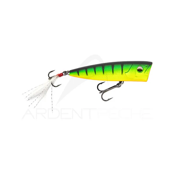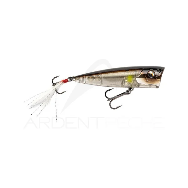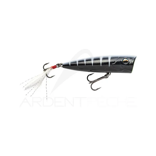 Un popper à la taille passe partout pour prendre Brochets, Perches et Black bass. Son équilibrage lui permet d’être très stable sur l’eau et sa grande bouche concave produit de grandes giclures et pop à chaque animation.