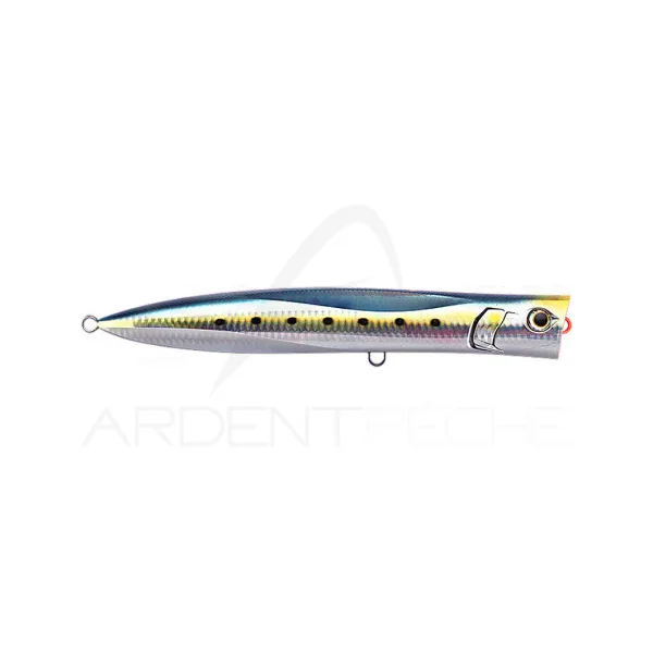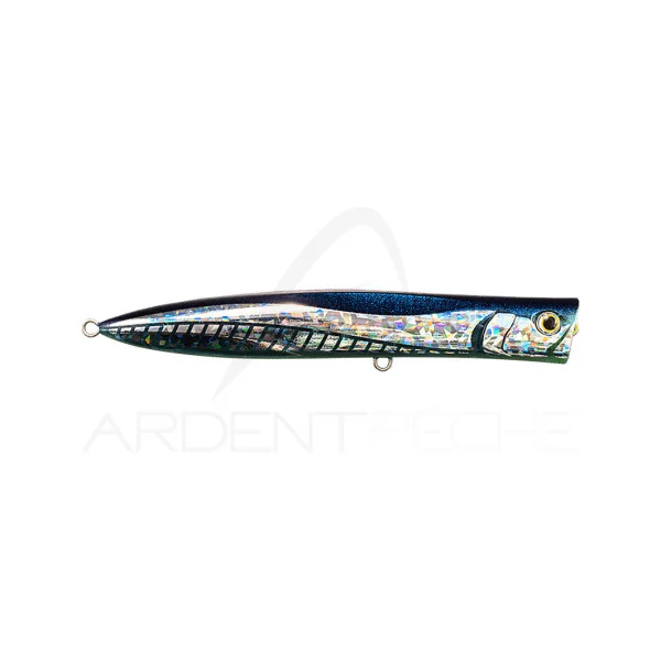 Le Duck Dive F230 est conçu pour la pêche des gros thons et autres gros poissons des océans. Ce popper au profil élancé possède une grosse bille interne qui alimente son transfert de masse aimanté et lui permet dêtre catapulté à très longue distance pour atteindre des chasses lointaines ou des zones inaccessibles en bateau. Il se tient parfaitement à lhorizontal dans leau et accepte des animations très douces et subtiles sur de courtes distances pour tromper la vigilance des prédateurs. Nous vous conseillons de larmer avec des hameçons triples de taille 4/0 à 5/0 ou des hameçons simples de 8 à 11 grammes (8/0 à 10/0)