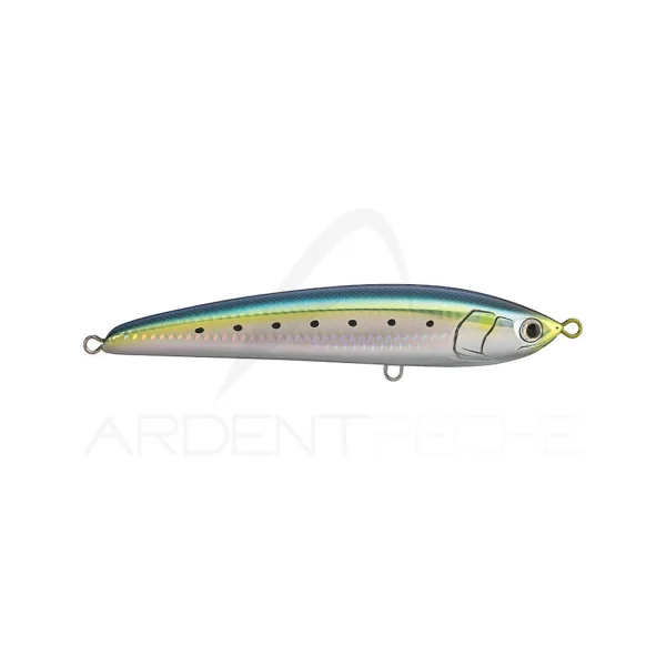 Le Legato F165 est un pencil flottant conçu pour battre du terrain et être ramener rapidement pour imiter une proie en fuite. La forme de son corps avec ses flancs plats optimise la récupération à grande vitesse en créant intentionnellement une action de nage sinueuse irrégulière. Lors de la récupération il plonge sous la surface et conserve cette nage caractéristique en émettant dimportants flashs lumineux qui attirent de loin lattention des prédateurs. Il dispose dun transfert de masse aimanté avec une grosse bille qui lui permet datteindre des distances de lancer phénoménales. Le Legato F165 est particulièrement efficace lorsque les poissons sont peu actifs et que les conditions météorologiques sont bonnes avec un ensoleillement élevé et une mer calme. Nous vous conseillons de larmer avec des hameçons triples de taille 1/0 ou des hameçons simples de 2,5 à 3,5 grammes (3/0 à 5/0).