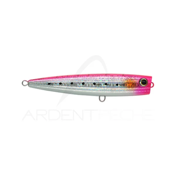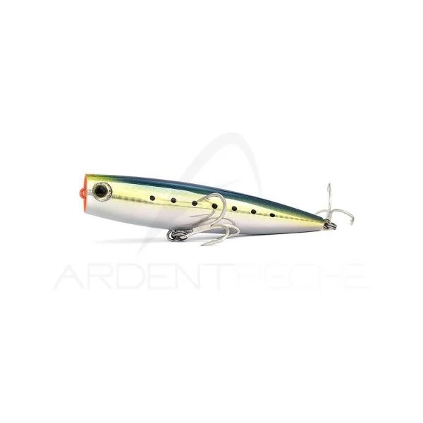 Le Pop Queen est un leurre emblématique de la gamme Maria. Décliné dans plusieurs tailles, ce popper est conçu pour la traque des prédateurs marins, du bar jusquaux plus gros thons et poissons tropicaux. Il dispose dune gorge concave caractéristique qui lui permet démettre des « pop » monstrueux lors des animations pour énerver et attirer de loin lattention des prédateurs. En lanimant avec de petites tirées successives, il est également possible de le faire évoluer avec une action walking the dog en surface.