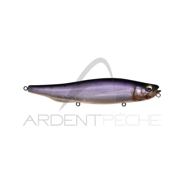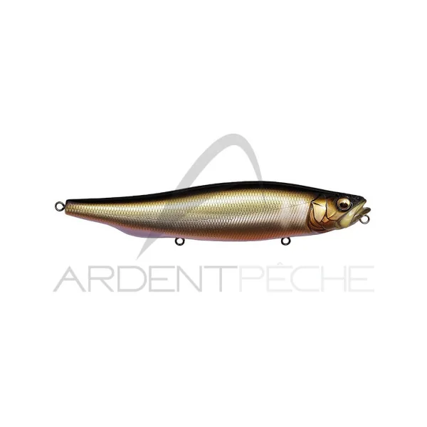 Le Megadog 180 est un leurre de surface clairement destiné aux gros poissons. Il est équipé d’une armature intégrale, d’un diamètre de 1,2 mm en acier inoxydable, et possède un double système de transfert de masse latéral qui lui permet d’effectuer de grandes embardés d’un coté à l’autre et ainsi adopter une nage en » long slide » particulièrement prononcée. Les trois hameçons du Megadog 180 sont montés sur émerillons rolling afin de limiter au maximum les possibilités de perdre le poisson pendant le combat.
