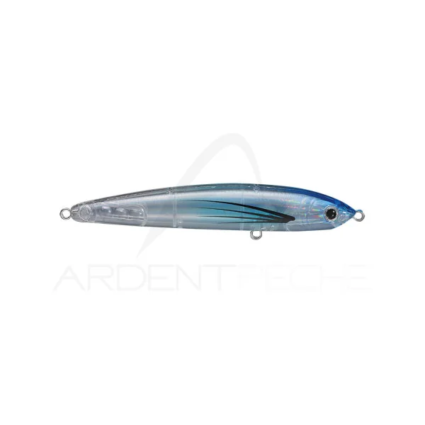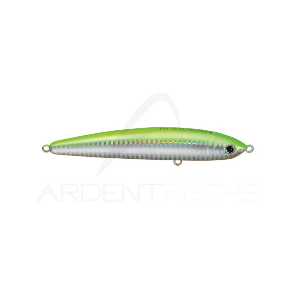 Sa posture à larrêt est oblique. De petites sollicitations lui feront exécuter un « walking the dog » parfait. Des tirées plus sèches le feront passer un moment sous le film de leau avec un mouvement désordonné droite / gauche. Un franc Jerk augmentera son oscillation avant de plonger. La position des billes déquilibrage (basse fréquence et peu bruiteuses) à larrière du leurre permettent doptimiser les distances de lancer.
