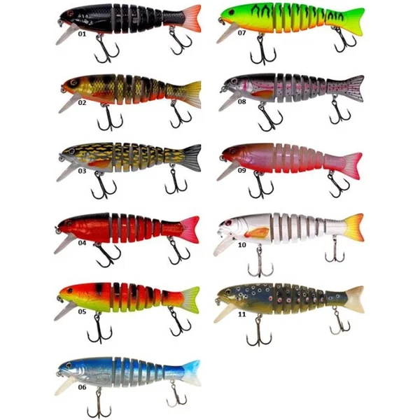 Leurre flottant articulé DAM Effzett Viper – 165mm – 55gr – 55gr Un poisson nageur avec une nage en S incroyable qui est virtuellement irrésistible pour tous types de carnassiers. Grâce à sa bavette, c‘est un leurre facile d‘utilisation, même pour les débutants. Sa densité flottante le rend utilisable pour tous les niveaux d‘eau jusqu‘à 1,70m. Essayez le, vous serez surpris.