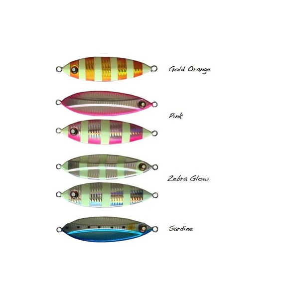 Les SlowMo sont les slow jigs de la gamme. Ils existent en 2 version : la version SLOWMO OVALE en 40 et 60g, qui vous servira aussi bien un slow jigging ultra light qu’en lancer ramené extremement papillonnant/ la version SLOWMO, avec ses poids de 120, 150 et 180g servira uniquement à de la verticale en slow jigging.