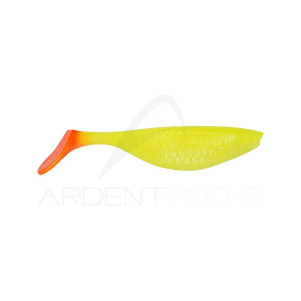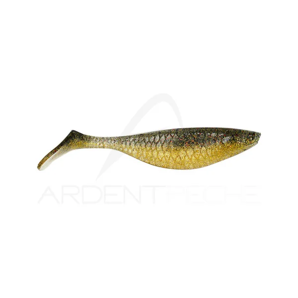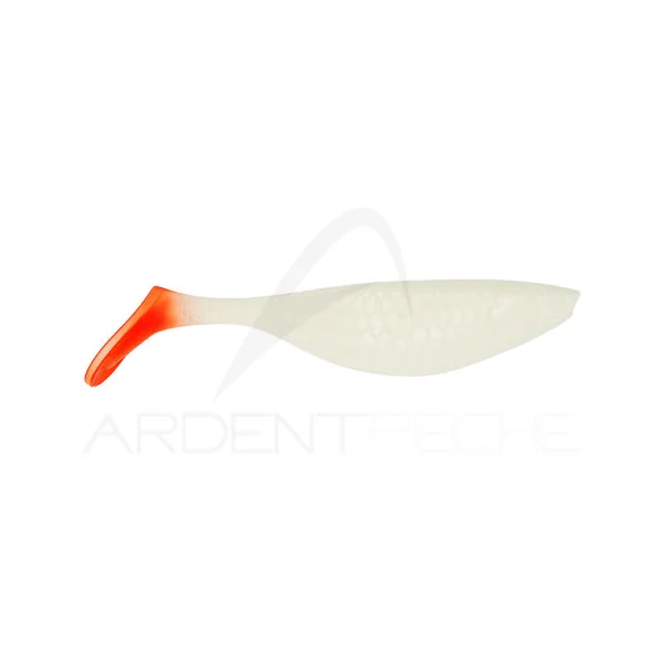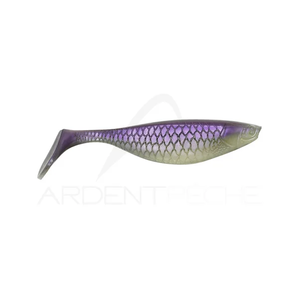 Sa forme particulière, sa finesse, apportent des atouts qui le différencient des autres shads du marché. Son corps très souple procure un effet « de vie » saisissant optimisé par laspérité des écailles qui créée des bulles dair. Ces aspérités ont aussi pour rôle de maintenir plus longtemps un attractant. Le design de la grosse caudale en forme doeuf apporte de puissantes vibrations sur les pêches linéaires, les pêches en traction. Il permet aussi des ondulations attractives pour le brochet, y compris à la descente. Lors de différents tests, nous avons pu vérifier son efficacité en pêche à la verticale sur les sandres en fleuve (Rhône) mais aussi en lacs (Massif Central).
