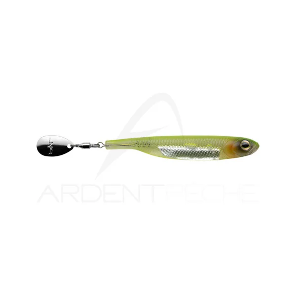 Leurre souple hyper réaliste muni dune palette colorado à son extrémité. Particulièrement efficace sur les pêches en linéaire ou traction sur les perches et les sandres, il excelle également sur les grosses truites en dérive. Matière résistante et élastique à conserver dans som emballage d’ origine.