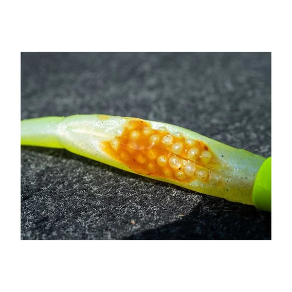 Contrairement aux attractants de surface qui se dissipent en quelques minutes, le Scent Shad est imprégné à cœur de l’attractant exclusif Fish Snax, une formulation propriétaire développée par Fox Rage. Cette imprégnation en profondeur garantit une diffusion constante et durable de signaux olfactifs dans l’eau tout au long de votre session de pêche.