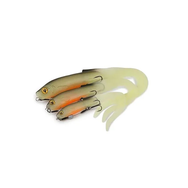 Quatre coloris soigneusement sélectionnés permettent d’optimiser l’attractivité dans toutes les conditions de luminosité et de turbidité. Les finitions UV Hot Olive, UV Red Wake, UV Perch et Burbot renforcent la visibilité du leurre et augmentent son potentiel déclencheur.