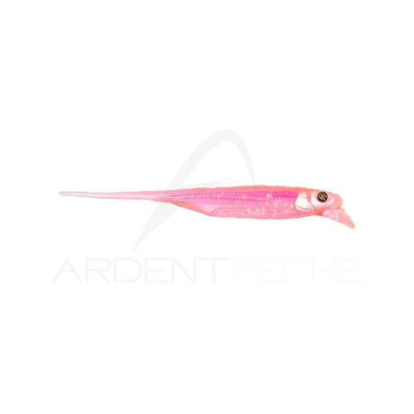 Développée pour les pêches du black-bass à vues et de postes bien marqués (tombants de berges et de falaises, éboulis, arbres immergés…). Lors des phases de tests, les perches, truites, bars en estuaire et bass se sont montrés également très coopératifs. Sa bavette lui permet de se freiner afin de pêcher le poste plus lentement et daugmenter les vibrations de sa caudale tout en accentuant les miroitements de ses flancs lorsqu’il est monté sur une tête plombée ronde. Cette bavette peut être coupée selon les besoins. Particulièrement redoutable en ‘Drop-Shot’ ou en ‘Ned Rig’ sur la perche et pour les pêches à darter ou à gratter sur la truite.