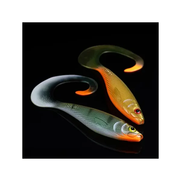 Le Otus maintenant en version 100% leurre souple. En plus de l’action de sa queue, il produit un rolling avec son corps et ce, même en récupération lente. Lorsque vous marquez une pause, la queue stabilise le leurre pendant quil descend lentement dans la colonne deau. Grâce à sa gomme souple et à sa peau texturée il produit des vibrations uniques.