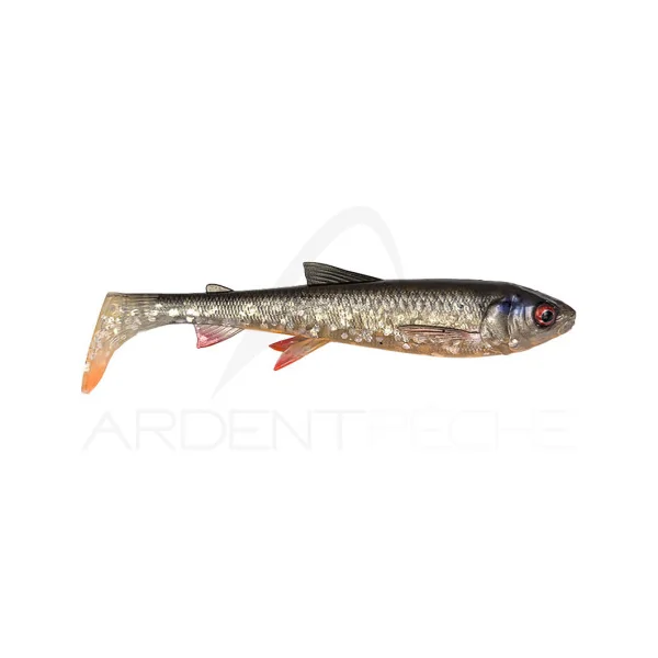 Encore une très belle imitation de la part de Savage Gear. Le Whitefish shad reprend la forme d’un poisson blanc grâce à un scan d’un vrai poisson. Grace à son gros paddle, il produit une nage avec un gros rolling. Sa grosse tête lui permet de pousser un gros volume d’eau mais aussi d’être très stable. Il est équipé d’un rattle en verre dans la queue pour ajouter un petit son de cliquetis à ses vibrations.