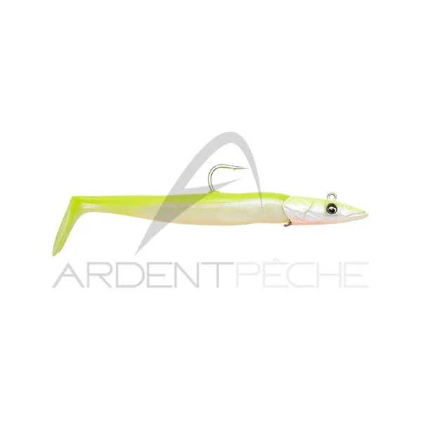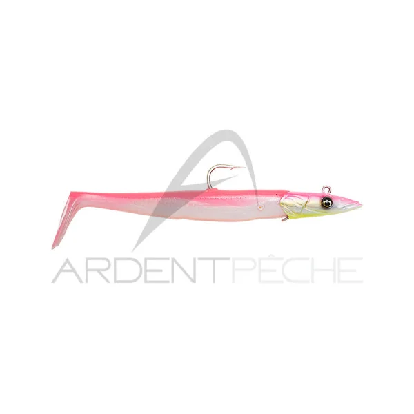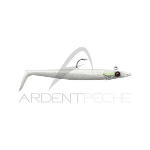 Superbe réalisation encore une fois pour cette imitation de lançon par Savage Gear. Il nage aussi bien à la récupération qu’à la descente, pour le rendre attractif à tout moment. La très belle tête est équipé d’un système avec « cure-dent » pour bloquer le corps souple sans l’abimer. Prémonté avec un rattle en verre.