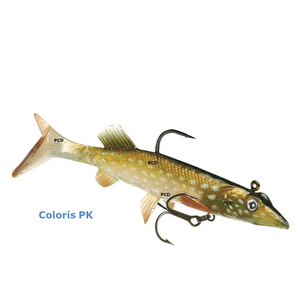 Leurres souples, imitant un petit brochet, de marque Storm.