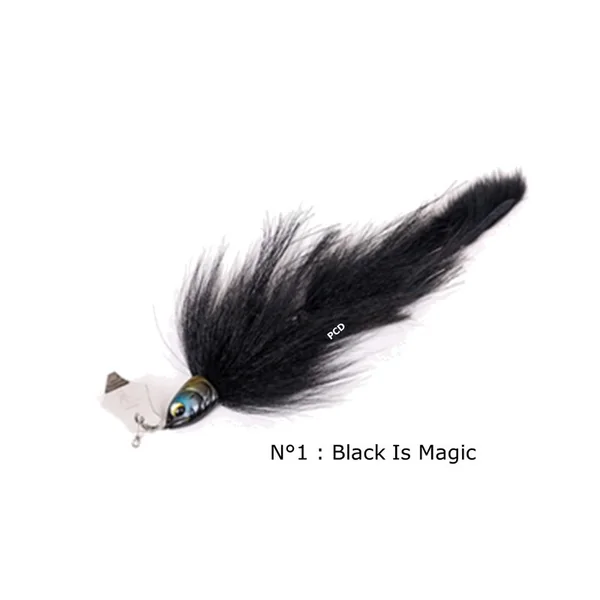 C’est un hybride entre un blade jig et un bucktail jig dans une taille big bait avec la légèreté d’un leurre de taille moyenne.