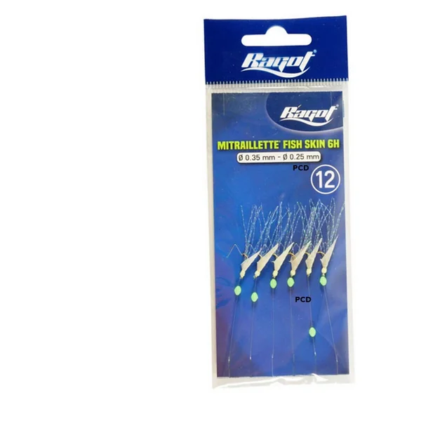 Fabriqué avec de la peau de poisson phosphorescente naturelle et hameçons coloris qui imitent parfaitement les petits alevins.