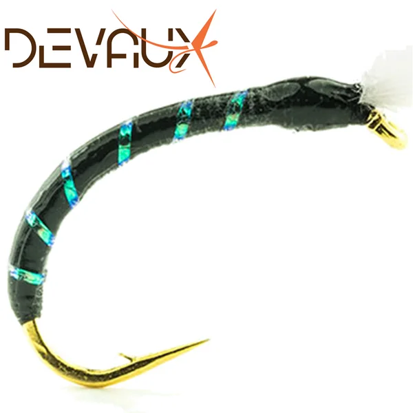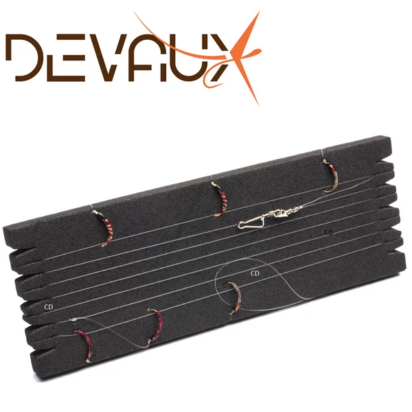Lignes à corégones montées en fil fluorocarbone de 16,5/100 avec 6 larves de chironomes sur potences espacées de 30cm.