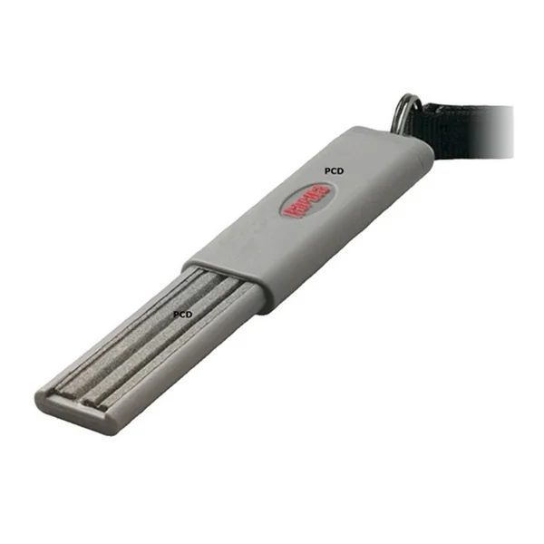 Elle bénéficie d’une sangle collier, d’une lime en oxyde d’aluminium qui aiguise parfaitement les pointes en quelques coups d’affûteur.