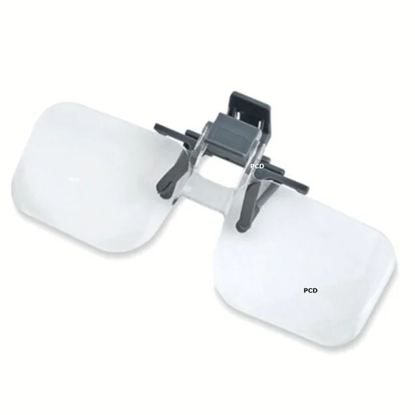Notre modèle de loupe se clipse sur les montures de vos lunettes pour les transformer en une loupe puissante avec un grossissement de 1,75x.