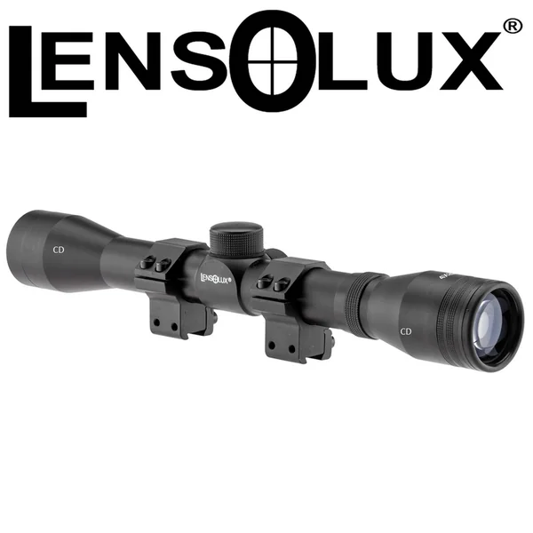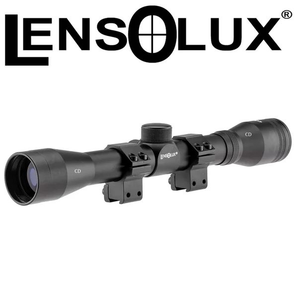 LUNETTE LENSOLUX 4X32 :Caractéristiques :-Lunettes de loisir pour carabines à air comprimé ou 22LR.-Lunette Lensolux de tir de loisirs destinés à l’initiation à la visée optique.-Équipée de 2 tourelles de réglage en dérive et en élévation.-Diamètre pupillaire : 8 mm.-Livrée avec une paire de colliers pour montage sur rail prismatique de 11 mm.-Grossissement : 4 fois.-Diamètre de l’objectif : 32mm.-Diamètre du corps : 25,4mm.*Livré avec montage.*Prix de vente conseillé 2018 : 99€.