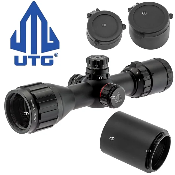 LUNETTE TACTIQUE COMPACTE UTG 3-9X32 Mildot illuminée :*Garantie 2 ans.-Lunette tactique compacte pour armes d’assaut.-Lunette de tir MILDOT illuminée 3-9 x 32.-Tourelles tactiques avec remise à zéro.-Verrouillage des tourelles par 1/4 couronne près du corps.-1 clic = 1/4 de MOA (soit environ 1/4 » à 100m).-Réticule illuminé rouge ou vert : commande par tourelle de gauche.-Réglage de parallaxe par bague frontale sur l’objectif.-Optique étanche sous azote – antibuée.-Livrée avec 2 bonnettes rabattables, 1 pare-soleil de 51 mm, 2 colliers H 14mm à verrouillage rapide sur rail Picatinny 21mm, 3 clefs 6 pans, 1 vis de rechange pour les colliers, 2 piles CR1620 et 1 chiffon optique.*Caractéristiques Techniques :-Réticule Mildot illuminé.-Grossissement : De 3 à 9 fois.-Diamètre pupillaire : 10,6 3,55mm.- Diamètre du corps : 25.4mm.-Longueur : 207mm.-Poids : 337g.-Diamètre de l’objectif : 32mm.*Prix de vente conseillé 2017 : 169€.*Pour les différents montages, nous consulter.
