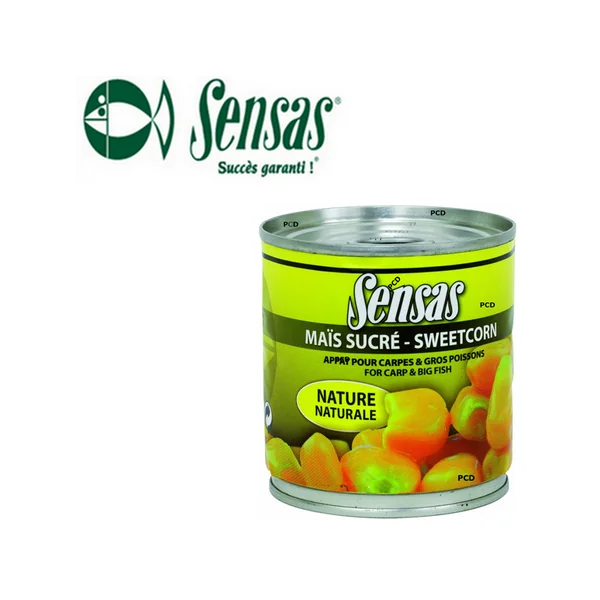 Ce maïs, de marque Sensas, est nature et de qualité, dans sa boîte de conserve, pour une tenue parfaite et remarquable sur l’hameçon.