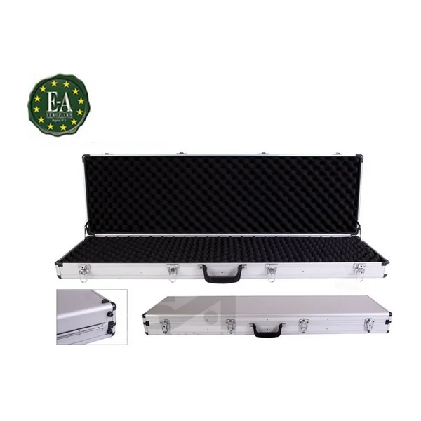 MALLETTE ALUMINIUM ARME LONGUE A CLEF : Caractéristiques : -Mallette en Aluminium. -Intérieur en mousse alvéolée, qui épouse et bloque les armes. -4 fermoirs dont 2 avec serrures.. *Dimensions : 110 x 35.6 x 11.4cm. *Livrée vide, avec 2 clefs.