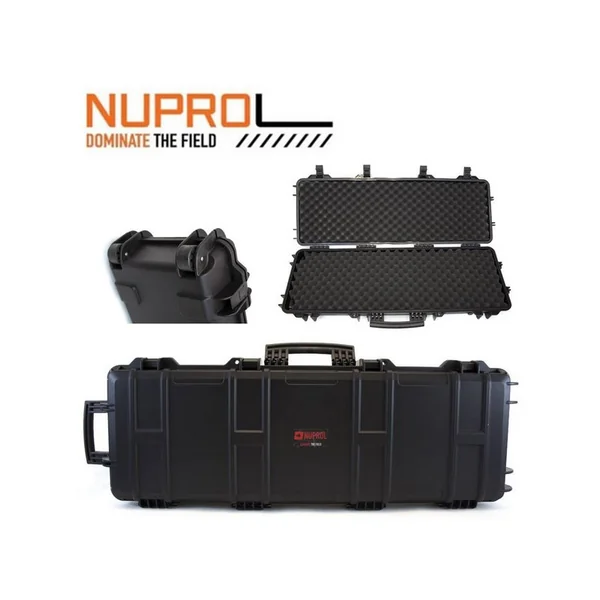 MALLETTE NUPROL WATERPROOF NOIRE :Caractéristiques :-Mallette de protection anti choc et waterproof, de marque NUPROL. -Mallette Waterproof certifié IP67.-4 fermetures solides.-Poignée de transport sur le dessus.-Poignée latérale pour tirer aisément la mallette.-2 emplacements pour cadenas.-Cotes intérieures : 98 x 29 x 12,5cm.-Cotes extérieures : 105 x 33 x 15cm.-Roulettes incluses pour plus de mobilité et moins d’effort !-Bouton de dépressurisation/décompression permettant de garder la mallette « sous vide ».-Poids : 2Kg500. *Prix de vente conseillé 2018 : 125€.