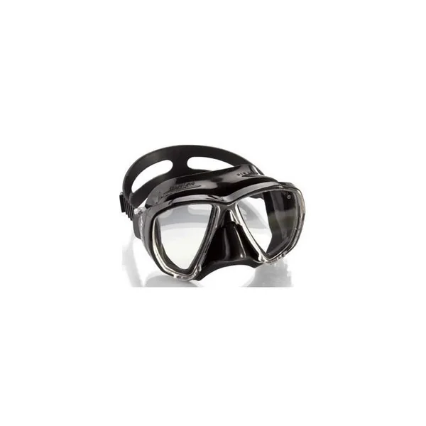 L’inclinaison des verres et la conformation de la jupe qui en résulte, réduisent considérablement le volume interne du masque et le rendent similaire aux modèles destinés à l’apnée. La jupe souple en silicone et la large lèvre d’appui sur le visage confèrent au masque une utilisation très confortable. Deux boucles basculantes garantissent un réglage rapide et précis de la sangle.