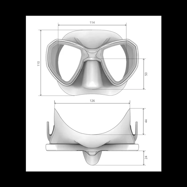 • Cadre bioculaire avec une structure abaissée au centre, optimisant la vision périphérique pour une meilleure perception sous l’eau.