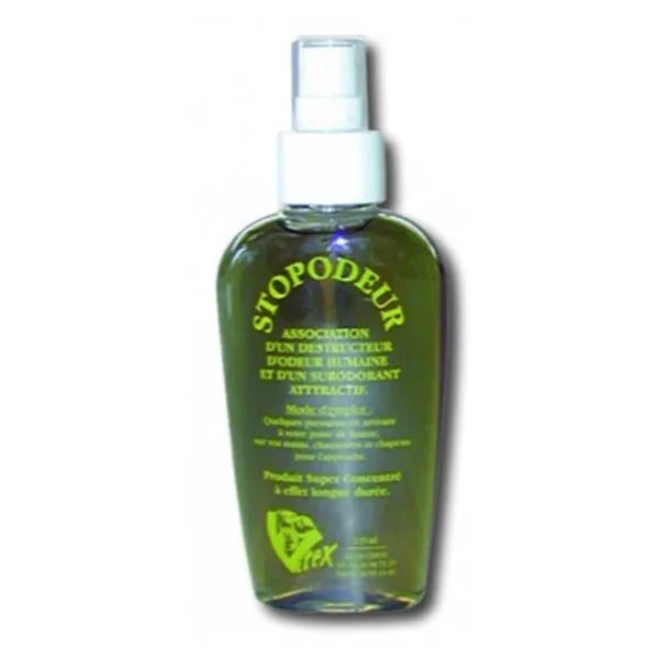 Contenance : 150 ml. Flacon vaporisateur. Association d'un destructeur d'odeur humaine et d'un surodorant attractif. MODE D'EMPLOI : Vaporiser quelques pressions en arrivant sur le poste de battue, sur les mains, les chaussures et le chapeau pour l'approche. Utiliser fréquemment pour les chasseurs à l'arc.