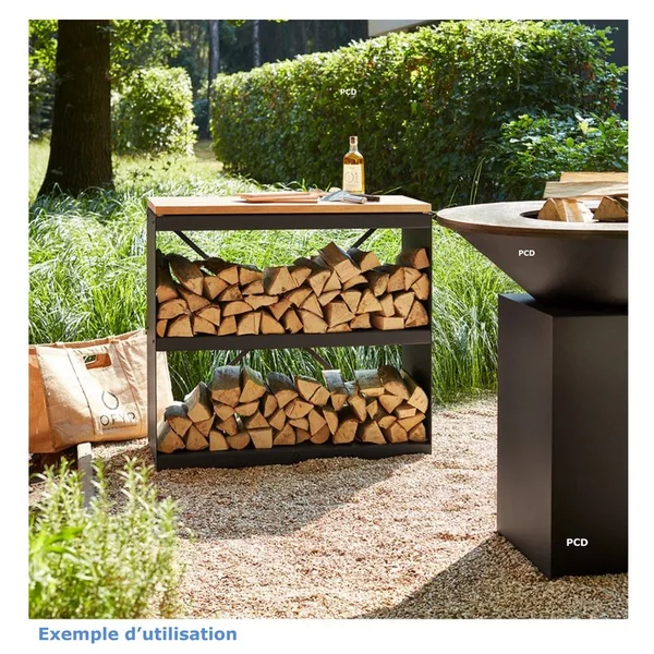 Découvrez ce meuble de rangement en acier laqué pour votre bois qui accompagnera les cuissons sur votre braséro.